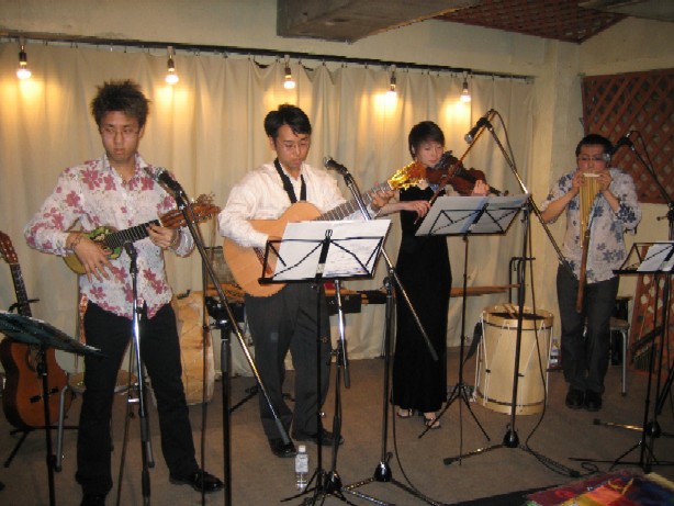 僕自身は、今から13年ほど前に東京で初めて開催されたベテラン・チャランゴ奏者の集まりである「マウロ・ヌニェス記念コンサート」に出演した当時は「最年少ソロ奏者」であったのに、今こうして自分よりもひと回り以上も若い人たちの会を主催するという立場になるとは・・・、などと感慨深い思いにもなりました。そういえば北島三郎が最近異なる局のバラエティ番組で、ある同じことを述べていました。それは「年下にこそライバルを作るべきだ、先輩にライバルを作っても意味がない、向こうは先にいっちゃうんだから」。実に含蓄のある言葉ですね。今回の合同ライブはそういう意味でも自分にとって良い刺激となりました。そして、これからも集まる機会を増やして日本のチャランゴ界をみんなで発展させて行きたいと改めて誓った、重要な機会でもありました。