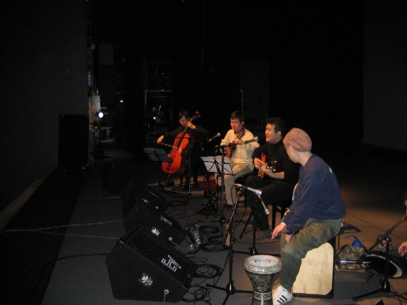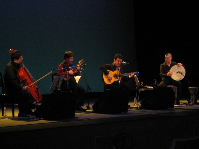 前半は「ラテンアメリカの旅」と題して各国(キューバ、アルゼンチン、ウルグアイ、チリ)の有名曲を主にギター弾き語りで、軽妙なおしゃべりも健在。前半最後はなんとステージ上での即興で彼が今悩んでいるという「花粉症」をテーマに組曲形式で第1〜3楽章までくしゃみを交えたチャランゴソロで!これだけでもびっくりなのに、更に後半ではパワーアップ、なんと会場のお客さん数人に出てきてもらってパーカスを持たせ、延々とブラジルのボサノヴァ&サンバのメドレー!