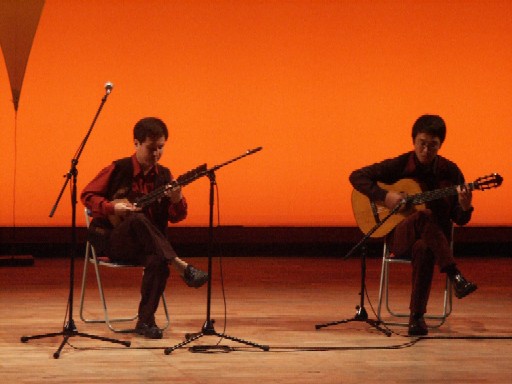 ボリビアの独立記念日は8月6日ですが、それより1日早く5日の金曜に愛・地球博(愛知万博)でボリビア・ナショナルデーイベントが開催されました。メイン会場となったEXPOホールでは、この日のためにボリビア政府から派遣されたモリーナ経済開発省次官などの挨拶に続いて、名古屋の主婦団体の方々による盆踊りや在日ボリビア人の方々によるモレナーダの踊りが披露されました。その後、ボリビア・ラパス市からやってきたチャリート・カラサス舞踊団によるディアブラーダやカポラルの見事な踊りがイベントを最高潮に盛り上げました。恥ずかしくも僕はラパスのこの舞踊団の名さえ聞いたことはなかったのですが、前日(!!)に日本に到着したとは思えないほどの生き生きとした踊りに感動させられました。途中、僕とホセ犬伏によるチャランゴ&ギター2重奏も、当日のプログラムでは唯一の器楽生演奏とあって気合が入り、とても気持ちよく、また久々の立派なホールで落ち着いた雰囲気で演奏にのめり込めたように思います。最後の曲では名古屋在住のサンポーニャ奏者のゆなさんに入ってもらい、力強いティンクの踊り付で演奏できたこともいい思い出になりました。