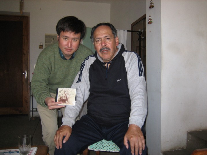 その「チャランゴの集い」に今秋の来日公演の合間をぬって特別出演を快諾して下さったのがもう一人のマエストロ、エルネスト・カブール氏です。そのカブールさん、昨日ラパス市内を歩いていてばったり出会い、いきなり「久しぶり!、家に来てチャランゴ見て行かないかい?」。有難いお申し出にのこのこついて行ったのですが、実際にはチャランゴを「見る」どころかマエストロはいきなり家にあったチャランゴで懐かしの自作の名曲の数々を弾き始め、もう1台ころがってたチャランゴを僕に渡して「ほら一緒に弾きなさい」というような目配せ。それは結局2時間も続き、これまでの氏のレパートリーで疑問だった細かい箇所なども本当に丁寧に教えてもらえたどころか、また復習が必要だから近いうちに来なさい、とまで・・・。